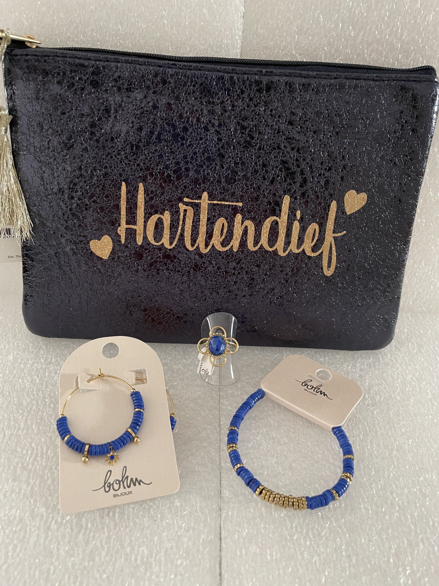 Celle-ci se compose d'une pochette dans laquelle nous avons mis un ensemble de bijoux en acier inoxydable, pierre véritable de la marque Bohm Paris.
