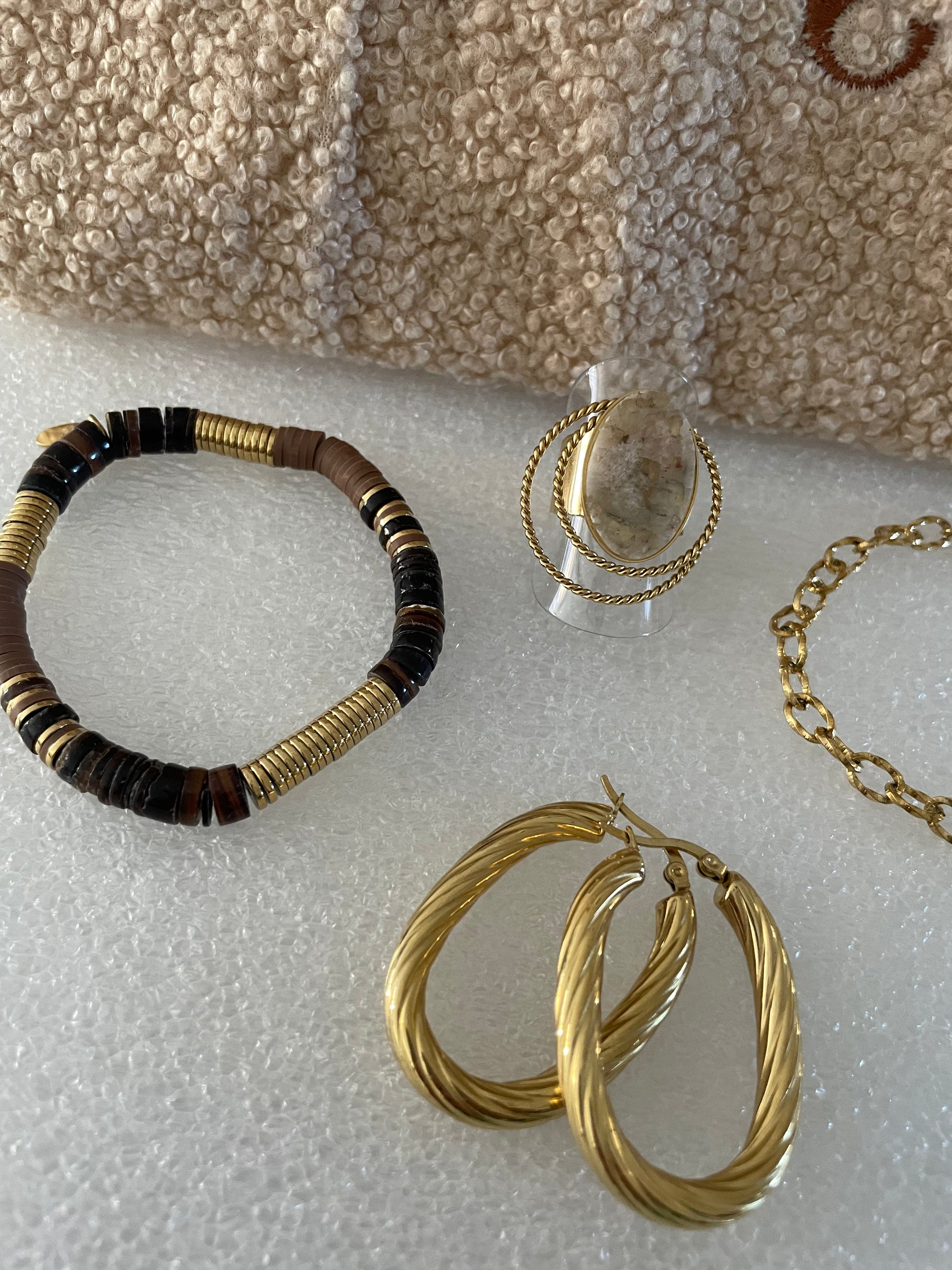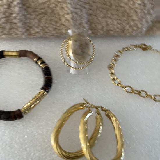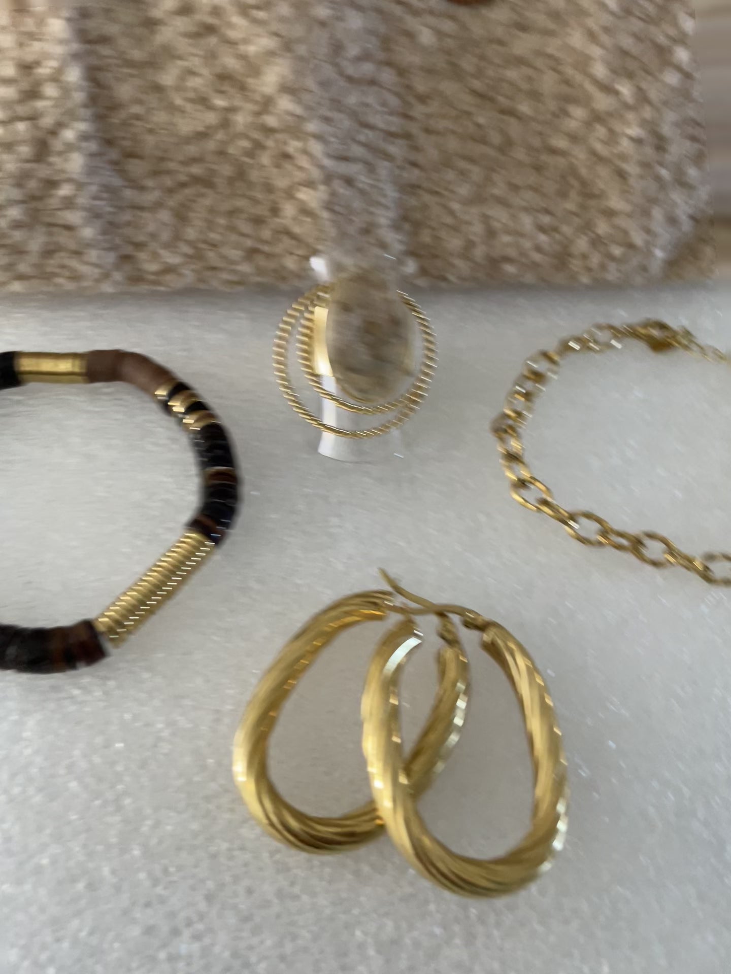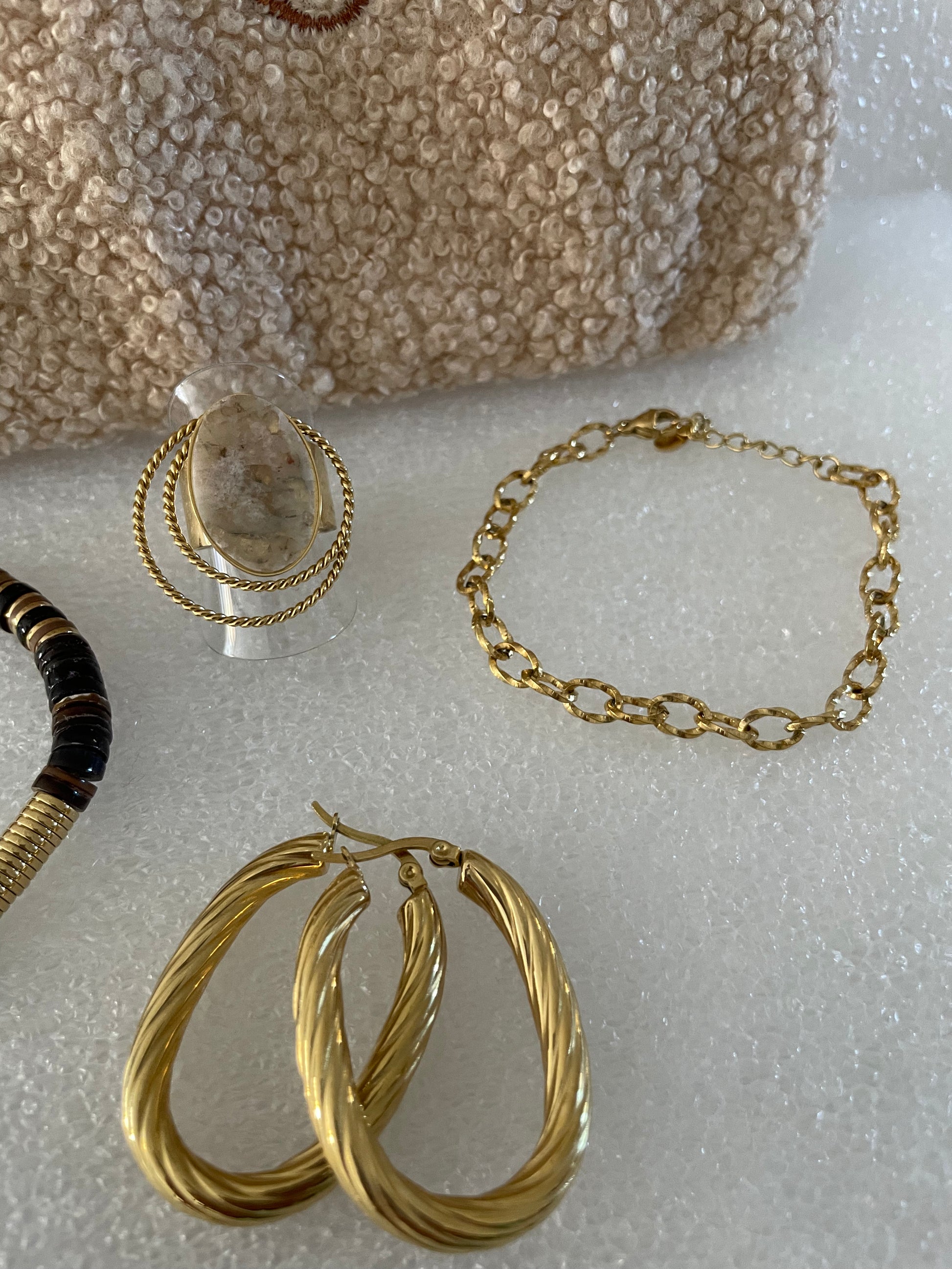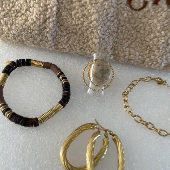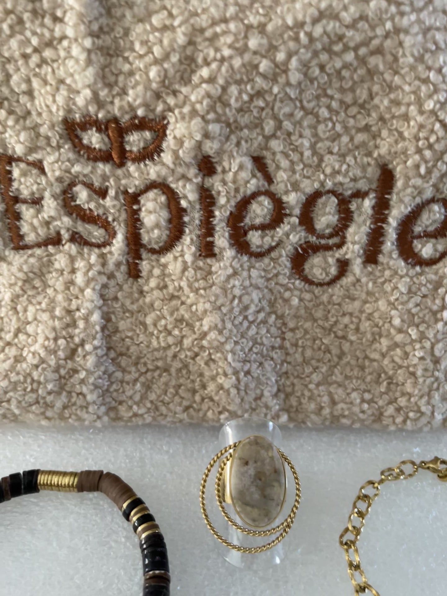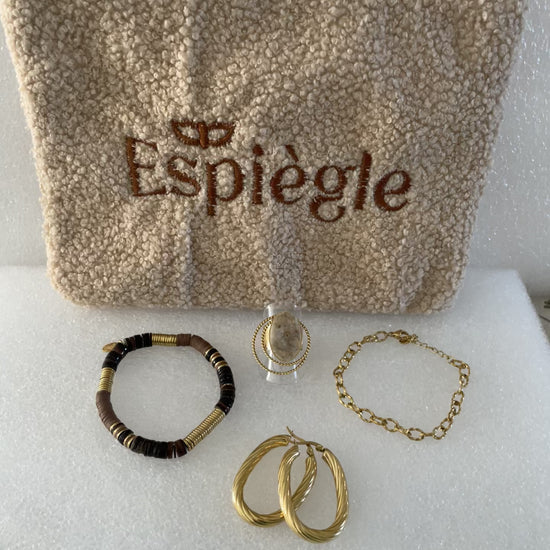 Celle-ci se compose d'une pochette dans laquelle nous avons mis un ensemble de bijoux en acier inoxydable et pierres véritables. Une pochette et 4 bijoux différents à porter ensemble ou pas.