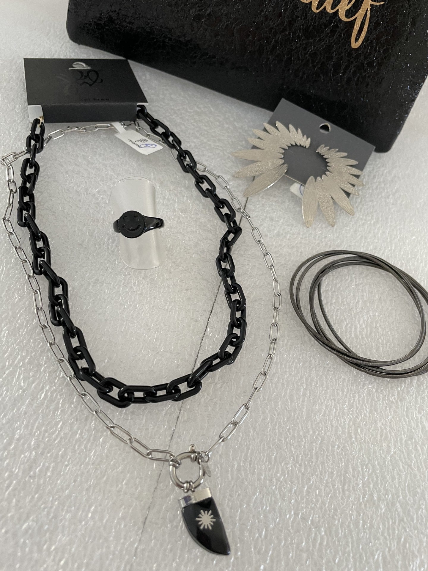 Seules les boucles d'oreilles chaine sont fantaisie
