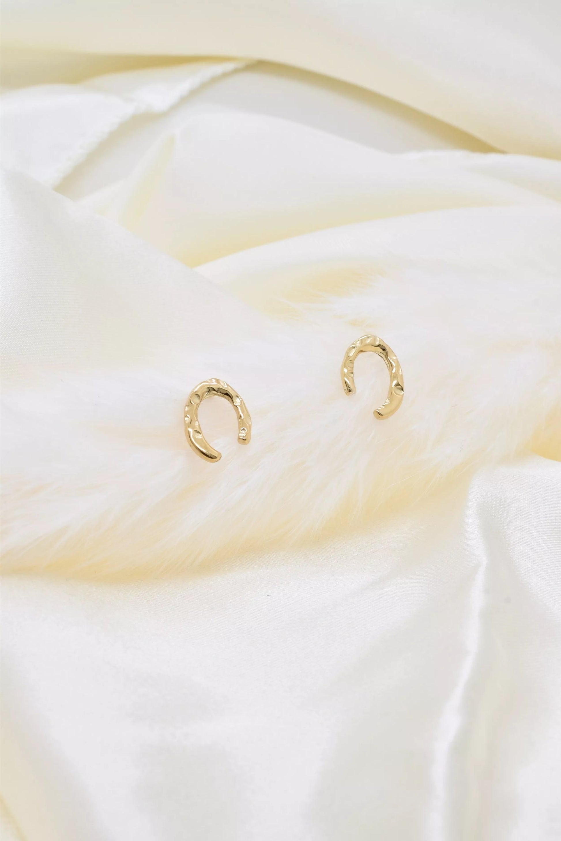 Boucles d'oreilles à puces effet martelées en acier inoxydable doré