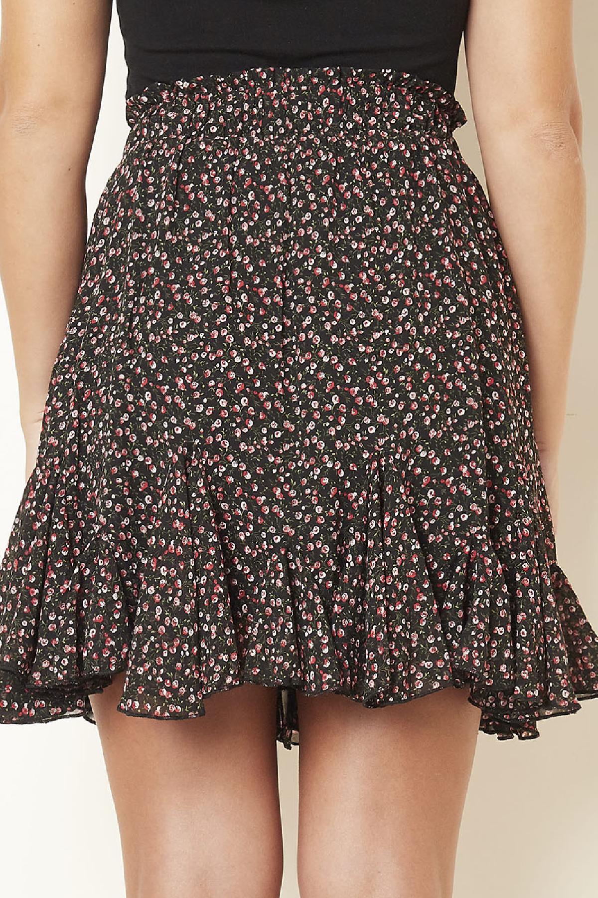 Jupe fluide avec imprimé fleuri et taille élastique.