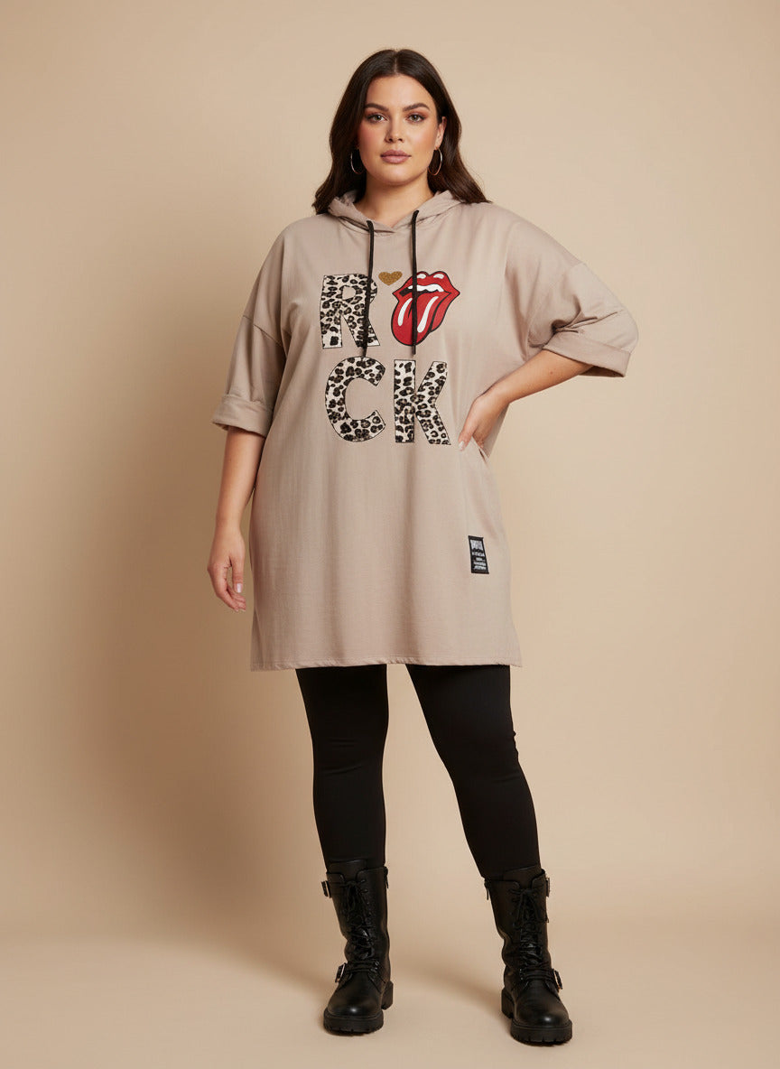 Sweat long à capuche imprimé Rock et sa bouche style rolling stones GT