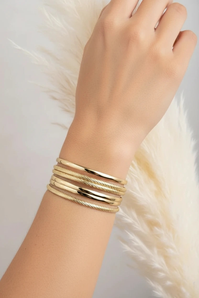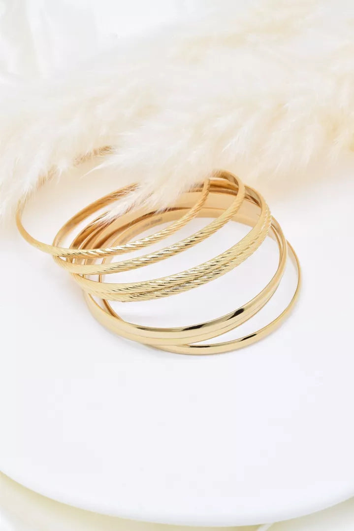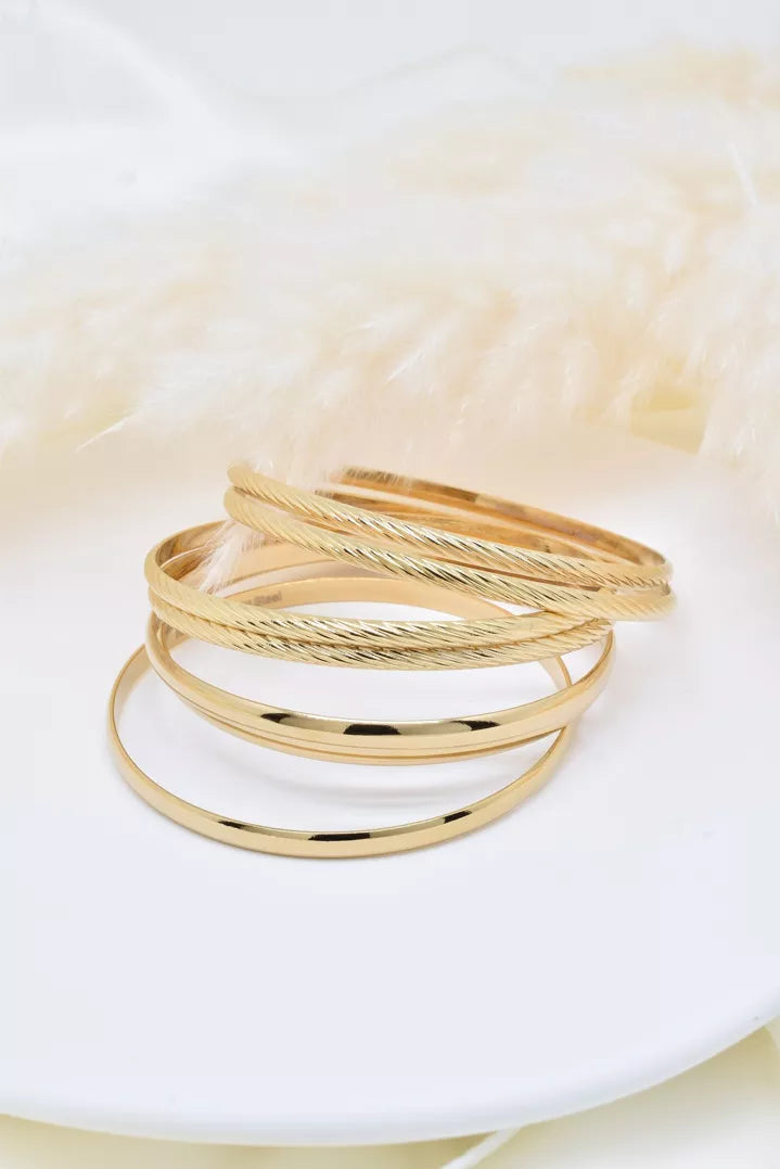 Bracelets en acier inoxydable argenté composé de 7 bracelets. 3 lisses et 4 striés. A porter ensemble ou séparément.